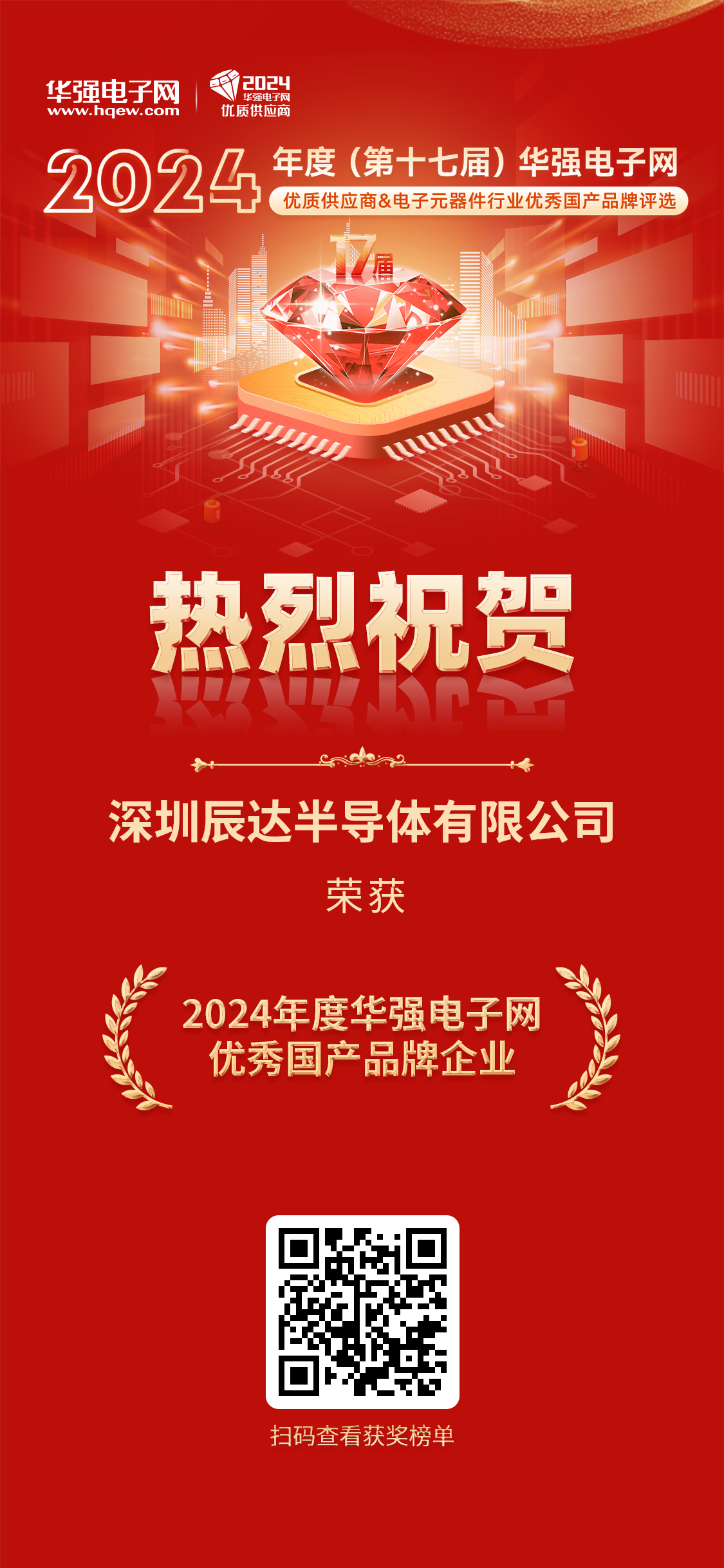 近日,深圳辰達(dá)半導(dǎo)體有限公司在激烈的市場競爭中脫穎而出,榮獲“2024年度華強(qiáng)電子網(wǎng)優(yōu)秀國產(chǎn)品牌企業(yè)”,這一榮譽(yù)不僅是對(duì)我們過往成績的高度認(rèn)可,更是激勵(lì)我們繼續(xù)前行的強(qiáng)勁動(dòng)力。