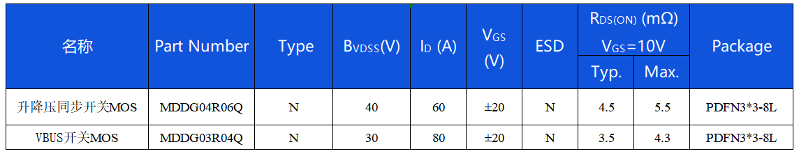 VBUS開關MOS:MDDG03R04Q,導通內(nèi)阻僅3.5mΩ
