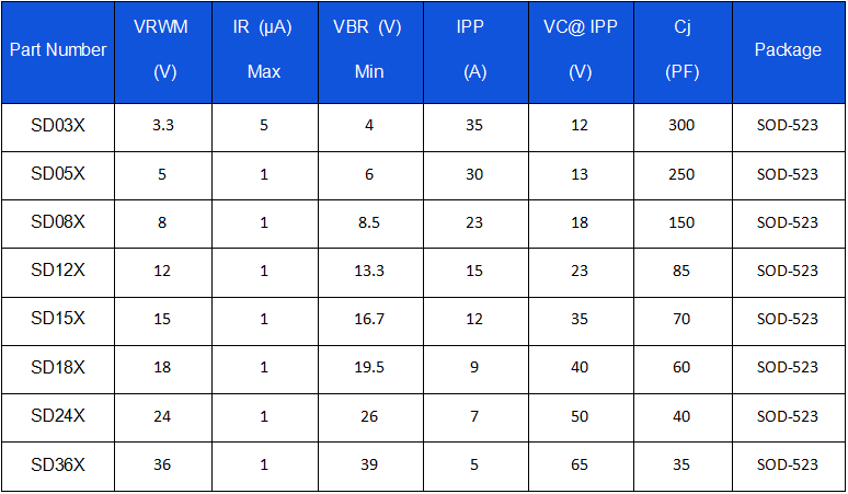 MDD推出的SDxxX系列防護(hù)器件,功率覆蓋300~450W,具備強(qiáng)大的浪涌防護(hù)能力,靜電防護(hù)可達(dá)接觸和空氣放電±30KV。該系列采用SOD-523貼片小型封裝,符合產(chǎn)品小型化需求,適用于各類充電頭、電動(dòng)剃須刀、電動(dòng)牙刷、小型藍(lán)牙音響等USB充電產(chǎn)品的充電口防護(hù)。