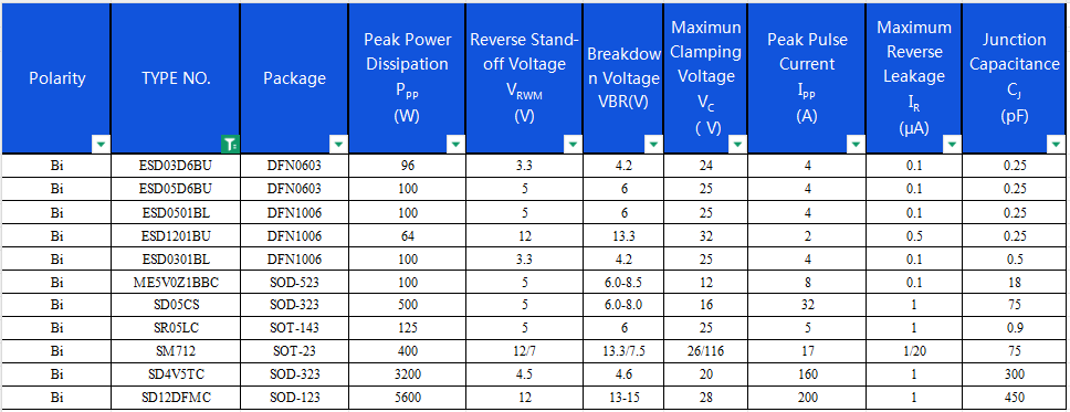 MDD的SDXXC系列雙向TVS二極管專為ESD防護(hù)設(shè)計(jì),具有以下特性: